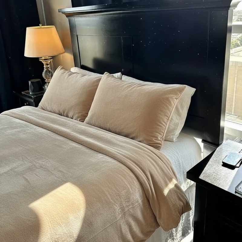 Wrap yourself in the plush softness of our velvet flannel sheets. Crafted from ultra-fine microfiber, these sheets feel like sleeping inside your favorite blanket—warm, cozy, and irresistibly smooth. Designed with deep pockets to fit securely over any mattress, they transform cold nights into cloud-soft comfort.